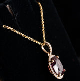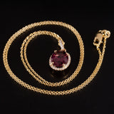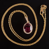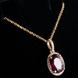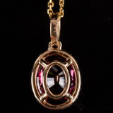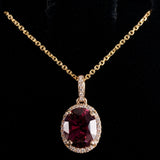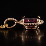 14k Yellow Gold Oval Rubellite Tourmaline Diamond Halo Necklace 1.915ctw 2.90g