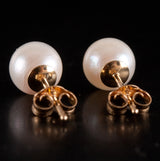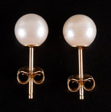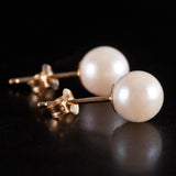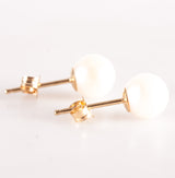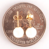 14k Yellow Gold Round Bead Cultured White Pearl Solitaire Stud Earrings .70g