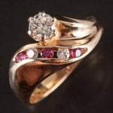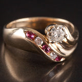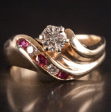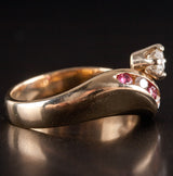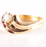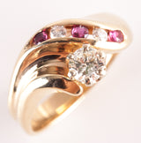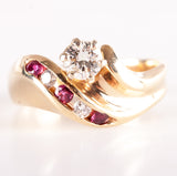 14k Yellow Gold Round G SI1 Diamond Ruby Cocktail Style Ring .525ctw 4.85g