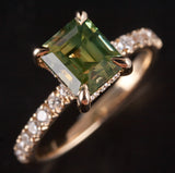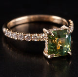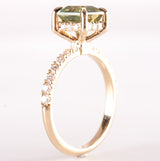 14k Yellow Gold Yellow Green Sapphire Solitaire Ring W/ Diamond Accents 2.29ctw