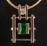 14k Yellow White Gold Lab-Created Emerald Natural Diamond Necklace .63ctw 9.32g