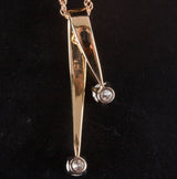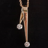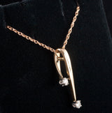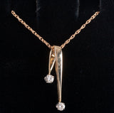 14k Yellow White Gold Round Diamond Two-Stone Dangle Necklace .06ctw 2.4g