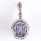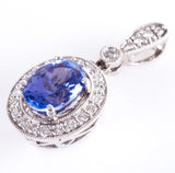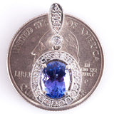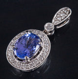 18k White Gold Oval Tanzanite Round Diamond Halo Style Pendant 1.53ctw 3.55g