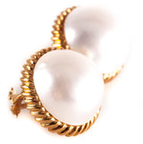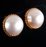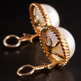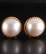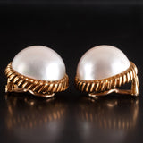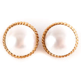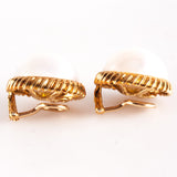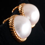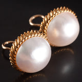 18k Yellow Gold Cultured Mabe Pearl Huggie Omega Clip On Earrings 12.8g