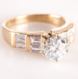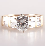 18k Yellow Gold Round & Baguette E VS2 Diamond Engagement Ring 2.0ctw 5.18g