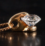 18k Yellow Gold Round Diamond Solitaire Necklace W/ 18" Adjustable Chain .50ct