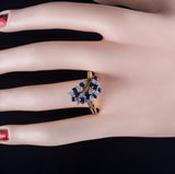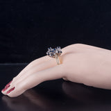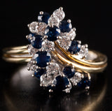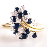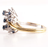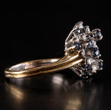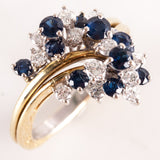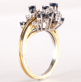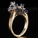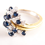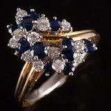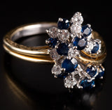18k Yellow White Gold Round Sapphire Diamond Cluster Style Cocktail Ring 2.29ctw
