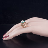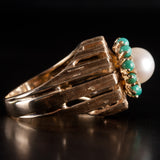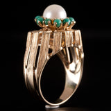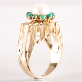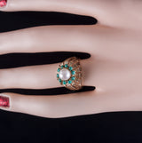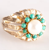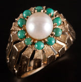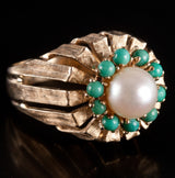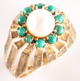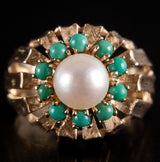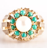 9k Yellow Gold Cultured Pearl Turquoise Halo Style Cocktail Ring 5.98g