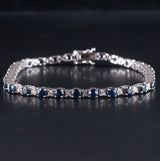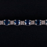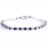 Effy 14k White Gold Round Sapphire Diamond Tennis Bracelet W/ Box 4.96ctw 10.5g
