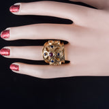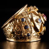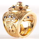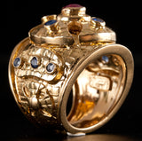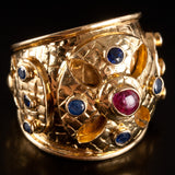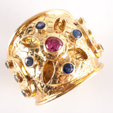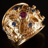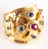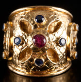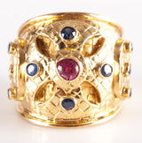 Ilias Lalaounis 18k Yellow Gold Ruby Sapphire Byzantine Cross Ring .94ctw 14.88g