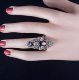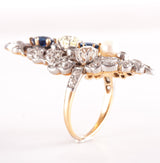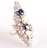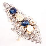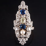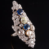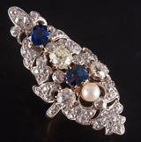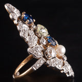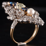 Vintage 1890's 18k Yellow Gold Platinum Sapphire Diamond Pearl Ring 3.72ctw