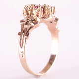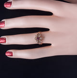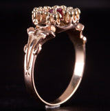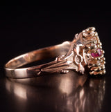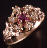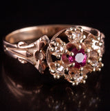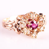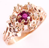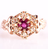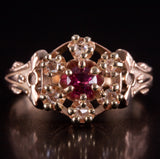 Vintage 1900s 10k Rose Yellow Gold Simulated Ruby & Natural Diamond Ring .105ctw