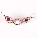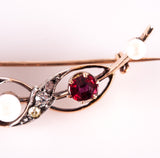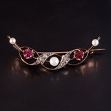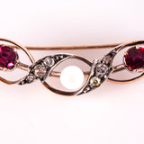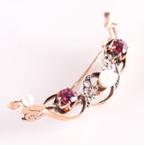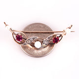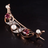 Vintage 1900's 14k Rose White Gold Burmese Ruby / Diamond / Pearl Brooch 1.1ctw