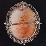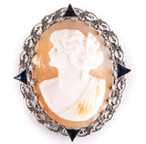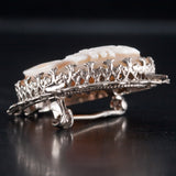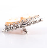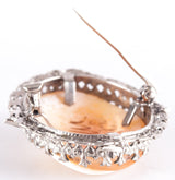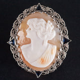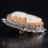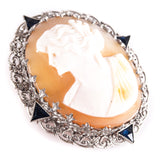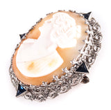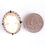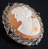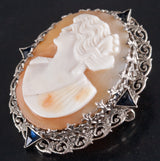 Vintage 1920's 14k White Gold Natural Shell Cameo Brooch W/ Sapphire Accents