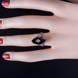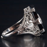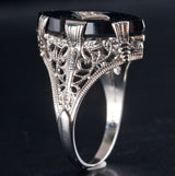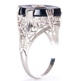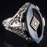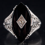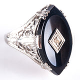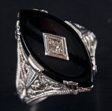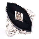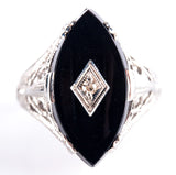 Vintage 1920's 14k White Gold Onyx Diamond Cocktail Style Ring .01ct 2.8g