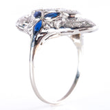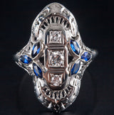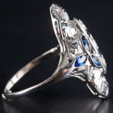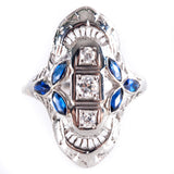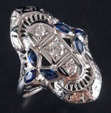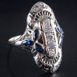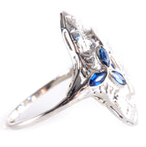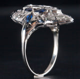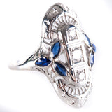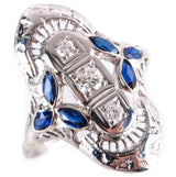 Vintage 1930's 14k White Gold Diamond Lab-Created Sapphire Filigree Ring .68ctw