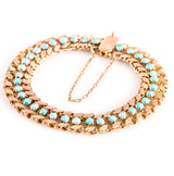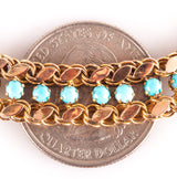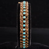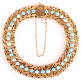 Vintage 1930's 14k Yellow Gold Round Cabochon Turquoise Bracelet 9.85g