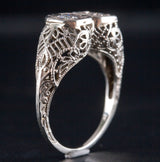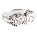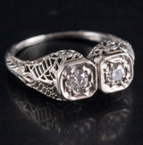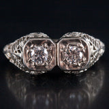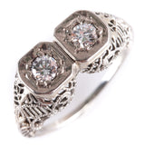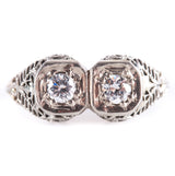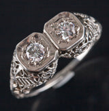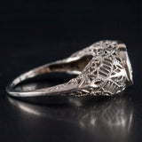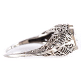 Vintage 1930's 18k White Gold Transitional Round Diamond Filigree Ring .24ctw