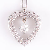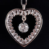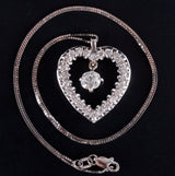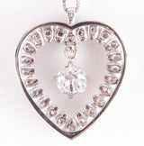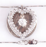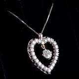 Vintage 1960s 14k White Gold Old Mine Diamond Heart Pendant W/ 16" Chain 1.72ctw