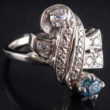 Vintage 1960's Platinum Round Sapphire Diamond Cocktail Ring .70ctw 5.23g
