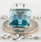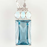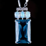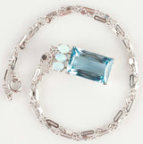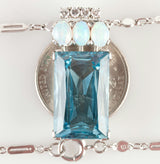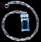 Vintage 1970's Platinum 18ct AAA Aquamarine Necklace W/ Opal & Diamond Accents