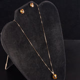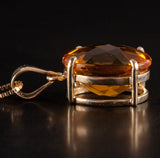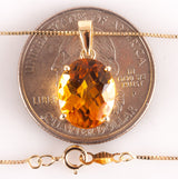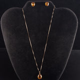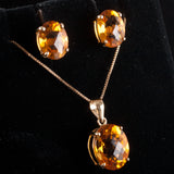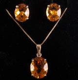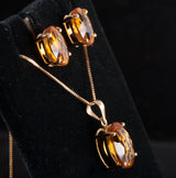 14k Yellow Gold Oval Checkerboard Citrine Solitaire Necklace Earring Set 9.2ctw