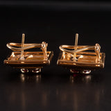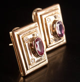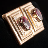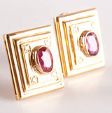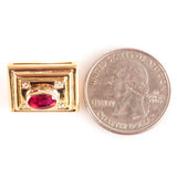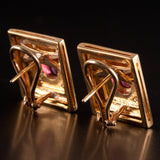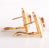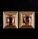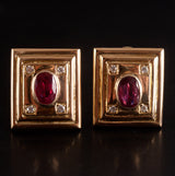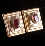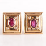 18k Yellow Gold Oval Ruby Round Diamond Huggie Earrings W/ Omega Backs 2.18ctw