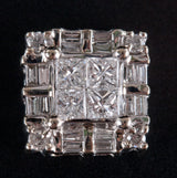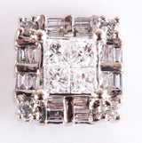 14k White Gold Princess Round Baguette Diamond Invisible Set Pendant .60ctw