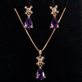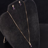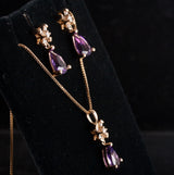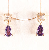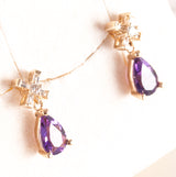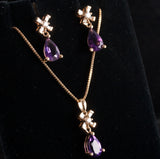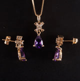 14k Yellow Gold Pear AA Amethyst Diamond Necklace Earring Set 2.58ctw 5.04g