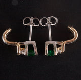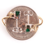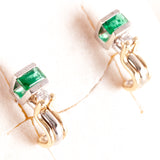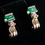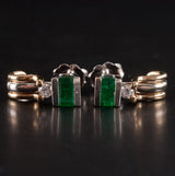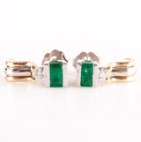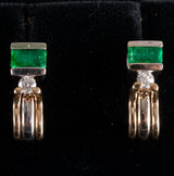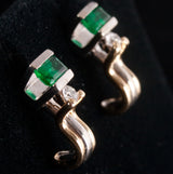 14k Yellow White Gold Emerald Diamond Stud Earrings W/ Butterfly Backs .65ctw