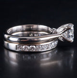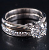 18k White Gold Diamond Solitaire Engagement Wedding Ring Set W/ GIA Cert 1.28ctw