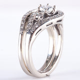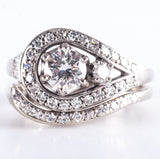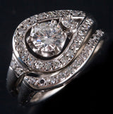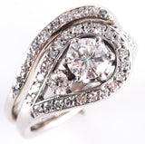 14k White Gold Round Diamond Engagement Wedding Ring Set 1.03ctw 7.84g