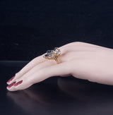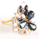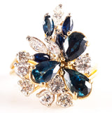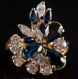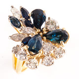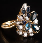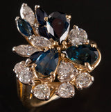 18k Yellow Gold Pear Marquise Sapphire Round Diamond Cocktail Ring 3.38ctw 8.04g
