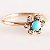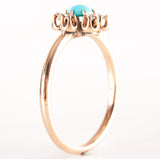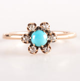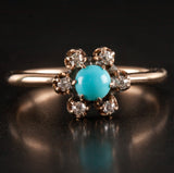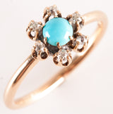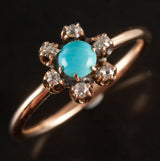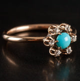 Vintage 1910s 14k Yellow Gold Round Cabochon Turquoise Diamond Ring .29ctw 2.12g