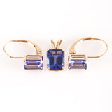 14k Yellow Gold Emerald Shaped Tanzanite Earring Pendant Set 3.75ctw 2.57g