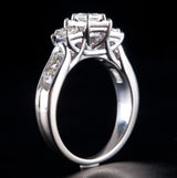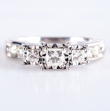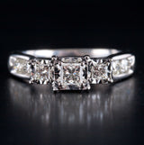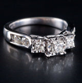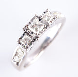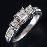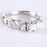 10k White Gold Princess & Round Diamond Three-Stone Style Engagement Ring .76ctw