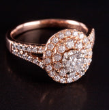 14k Rose Gold Round H SI2 Diamond Halo Cluster Style Engagement Ring 1.0ctw