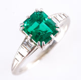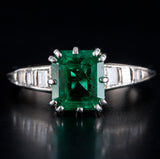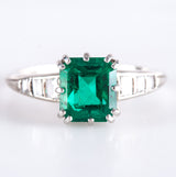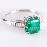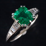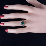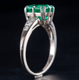 14k White Gold Emerald Solitaire Engagement Ring W/ Diamond Accents 2.21ctw