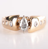 14k Yellow Gold Marquise / Round H SI2 Diamond Engagement Ring .425ctw 5.13g