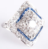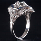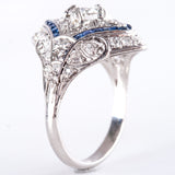 Vintage 1920's Platinum Transitional Diamond Sapphire Engagement Ring 1.26ctw