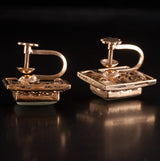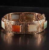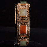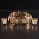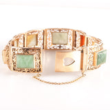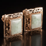 12k Yellow Gold Rectangle Cabochon Jade Bracelet Clip-On Earring Set 42.16g