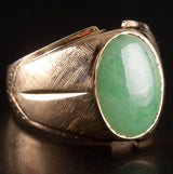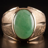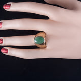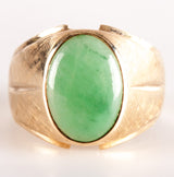 14k Yellow Gold Oval Cabochon Jade Solitaire Cocktail Ring 9.55g Size 9.5