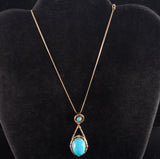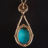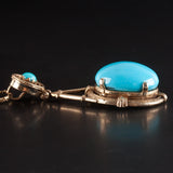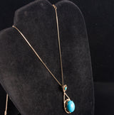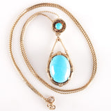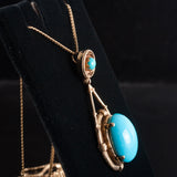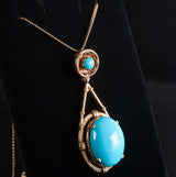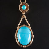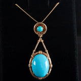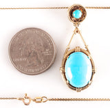 14k / 10k Yellow Gold Cabochon AA Turquoise Pendant Necklace 20" Length 15.67ctw