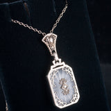 Vintage 1920's 14k White Gold Round Diamond Carved Crystal Necklace .01ct 4.0g