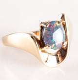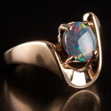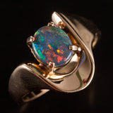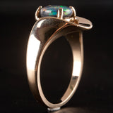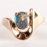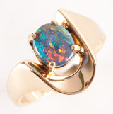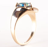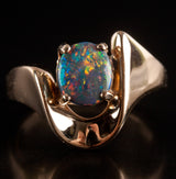 14k Yellow Gold Oval Cabochon AAA Black Opal Solitaire Ring .94ct 5.42g