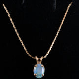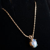 14k Yellow Gold Oval Cabochon Opal Solitaire Necklace W/17" Chain .53ct 2.15g