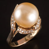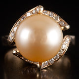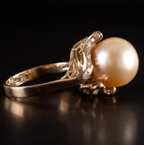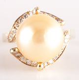 14k Yellow Gold Cultured Pearl Solitaire Ring W/ Diamond Accents .30ctw 9.15g