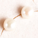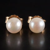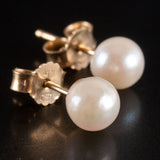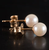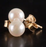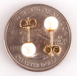 14k Yellow Gold Round Bead Cultured White Pearl Solitaire Stud Earrings .65g