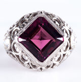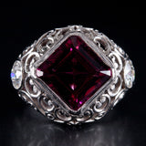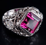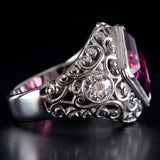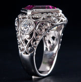Platinum Asscher Rubellite Tourmaline & Diamond Cocktail Ring 7.30ctw 12.1g