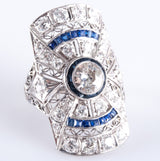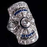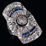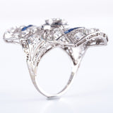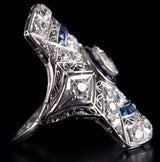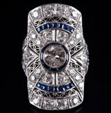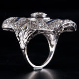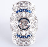 Vintage 1900's Platinum 18k White Gold Old Euro Diamond Sapphire Ring 2.39ctw